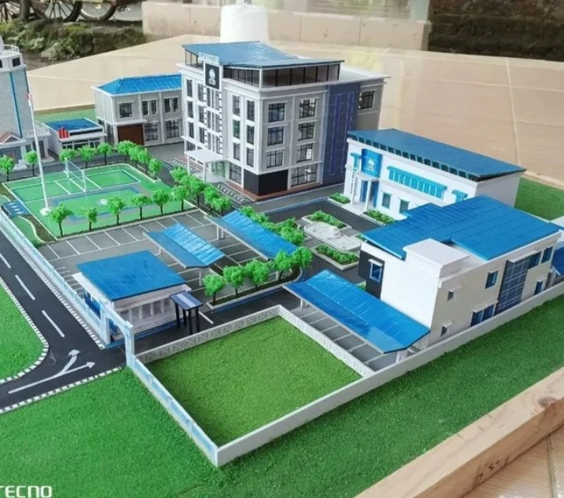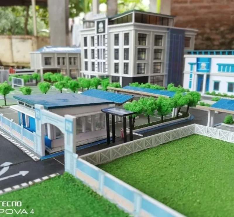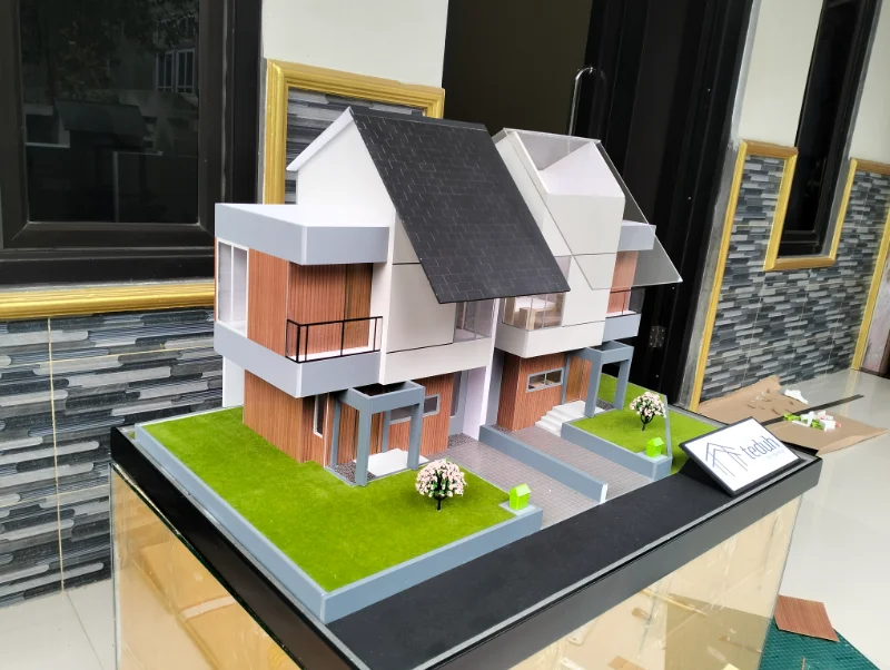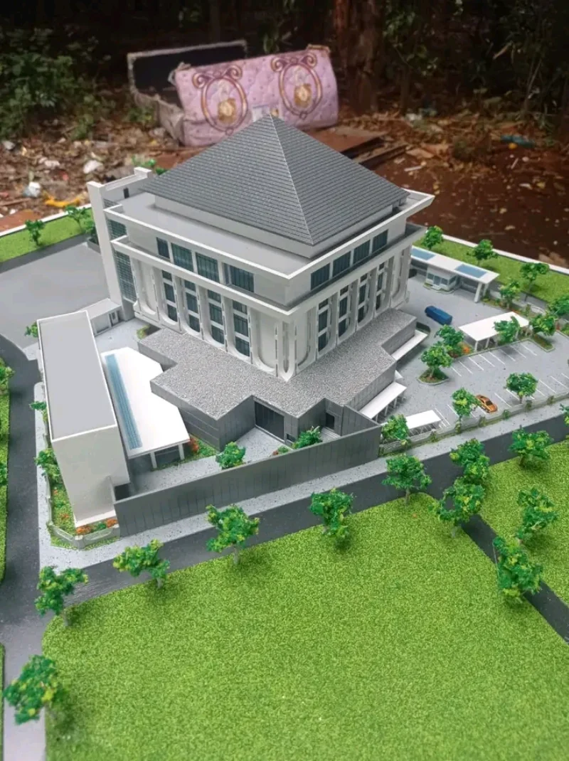 Maket yang dirancang untuk menampilkan desain arsitektur dan struktur bangunan secara detail. Cocok untuk presentasi proyek konstruksi, perencanaan kota, atau kebutuhan akademis.